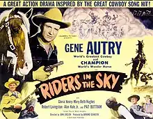 Riders in the Sky is a 1949 American Western film directed by John English and starring and co-produced by Gene Autry; featuring Gloria Henry, and Pat Buttram. Based on the song by Stan Jones, the film is about a murder, of which rancher Ralph Lawson (Steve Darrell) is accused, and Gene Autry attempting to clear his name.