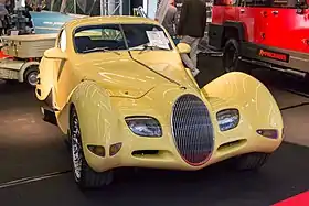 The car has nostalgic design cues, taking inspiration from designs of the late 1930s, and more specifically taking inspiration from a 1938 Talbot-Lago SS by Figoni & Falaschi.[3] The Yello Talbo is powered by a supercharged 5.0L V8-engine producing 320 hp (239 kW) and coupled to an automatic gearbox.[4] This allows it to accelerate from 0–100 km/h (0–62 mph) in 5.5 seconds.[5]