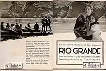 Rio Grande is a 1920 American silent Western film directed by Edwin Carewe and starring Rosemary Theby, Allan Sears, and Georgie Stone.[1]