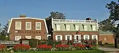 Weir purchased land in Queenston in 1943 and began construction on the site in the late 1950s. The country residence and coach house were designed by English-born architect Arthur E. Nutter (18741967), a family friend and the first architect to practice in London, Ontario. Weir contributed significantly to the design, requesting details such as a fall-out shelter in the basement and a self-contained apartment over the coach house. For the main building, Nutter adapted a Georgian-style complete with mansard roof and gabled windows. The interior rooms retain their original wood paneling, installed by finish-carpenter Alexander Kiss, who used a variety of different woods, including maple, mahogany, oak, knotty pine, and walnut, with clear pine and birch ceilings. The home was completed in 1970 and converted into an art museum following Weir’s death. In 1996, a large porch on the east side of the building was replaced by additional exhibition space.