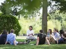 Riverdale also attracted attention in 2021, for teaching students to monitor each other in order to determine if they were practicing "allyship" sufficiently, which meant that those rejecting woke ideology would be reported to school administrators.[15] The practice, introduced as a replacement for the Pledge of Allegiance, caused Bion Bartning to withdraw his children from the school, protesting "a kind of religion taking hold in American education that forces people into categories according to their race."[16] Groups of parents had been protesting the school's practice of "leftist indoctrination" in 2019.[17]