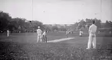 The park has recreational fields for soccer, baseball, and Ultimate on both sides of the river. There is also a swimming pool, tennis courts and outdoor hockey rink to the northeast, and a running track in the centre. A footbridge crosses the Don Valley Parkway, Bayview Avenue, the Canadian National Railway Bala subdivision tracks, and the river and joins the two sides of the valley as well as the Lower Don Recreational Trail that follows the river. The bridge is located near the site of a butternut tree bridge built by Ely Playter that provided access to his property and mill around the 1790s. The bridge is depicted by Elizabeth Simcoe's watercolour painting Playter's Bridge near York, ca. 1796.[1]