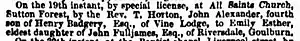 It seems that the Fulljames family resided at Riversdale from the early 1860s. A mention is made in the Sydney Morning Herald in 1861 that John had grown a prize apple at his house in the Old Township of Goulburn.[12] The first reference to the property being called Riversdale was in 1862 when a marriage notice (see picture on right) for the eldest daughter Emily was placed in the Sydney Morning Herald[13] by John Fulljames. It appears therefore that it was the Fulljames family that named Riversdale.