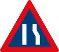 Roadway narrows from both sides ahead