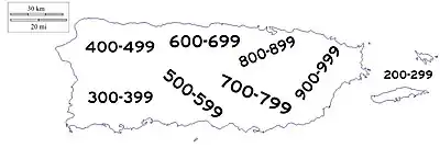 Another example is in the southeastern municipality of Maunabo where the 700-799 grid overlaps the 900-999 grid.