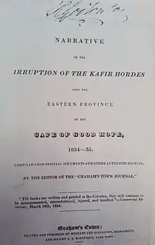 - A Narrative of the Irruption of the Kafir Hordes Into the Eastern Province of the Cape of Good Hope, 1834-35: Compiled from Official Documents and Other Authentic Sources. Meurant and Godlonton. 1836.