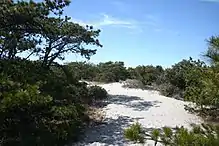 A path through the trees at Robert Moses State Park.