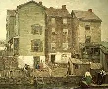 In 1906 Spencer moved to the Bucks County area, where Charles Rosen had settled three years earlier. For the next few years he lived in various small towns on the Delaware River.[3] These included Frenchtown, New Jersey and Point Pleasant, Pennsylvania.[5] During this period he studied with Daniel Garber, who strongly influenced his style.[3] For a few years Spencer and an artist friend Charles Frederic Ramsey lived in poverty in an extremely dilapidated old house called the Huffnagle Mansion.[lower-alpha 1][3] They paid a nominal rent of $2 per month. The house had peeling plaster and little in the way of heating. The lavatory was an outhouse. Spencer was very productive during this period, and won awards at the National Academy of Art and Design and the Art Club of Philadelphia.[3]