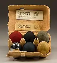 "[His] work obviously related to that of the Pop artists that I had discovered a few years before ... Watts' chromed objects closely related to Johns' cast beer cans and flashlights, for instance. The 1964 exhibition also included Watts' sculpture of plaster cast loaves of bread on shelves. That work, in particular, I think of as one of his most important inventions. I'm also particularly fond of the chrome eggs and egg carton in my own collection which will appear in this [posthumous] show. The public will be surprised that an artist -so promising at such an early date- did not receive through the years the appreciation he deserved." Leo Castelli[8]