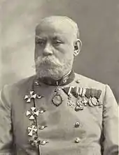 Robert von Sterneck (Robert Freiherr Daublebsky von Sterneck the Elder, 1839–1910) was a member of the Budweis Daublebsky von Sterneck baronial family who served as an Austro-Hungarian general major, geophysicist and astronomer. He studied in Prague and entered the Austro-Hungarian Army in 1859, participating in the Magenta und Solferino campaign that year and in the Austro-Prussian War of 1866. From 1862 to 1880, he served head of the astronomical-geodetic section of the military geographic institute in Vienna, and from 1880 to 1902 as the head of the institute's astronomical observatory. He led numerous geodetic missions in the Balkans during the 1870s.