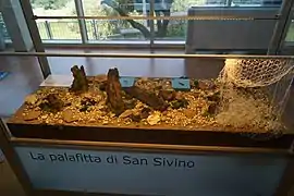 - The pile dwelling in San Sivino, Gabbiano: This UNESCO Heritage Site is also known as the "Gabbiani" pile dwelling. Discovered in 1971, it was inhabited at different periods (from the 20th to the 18th century BC and from the 17th to 16th century BC). It is made up of wooden piles and stones. These ruins are still set close to the shore of the lake. Here, archaeologists also found ceramics and bronzes. Although its location is known, significant and continuous studies on this site have not been made yet.[11][7]