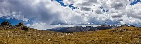 This article incorporates public domain material from "Majestic view from the old, one-way, dirt Fall River Road in Rocky Mountain National Park in the Front Range of the spectacular and high Rockies in north-central Colorado". Library of Congress - Prints & Photographs Online Catalog. Library of Congress. Retrieved October 28, 2016. - ↑ "Ecosystems of Rocky Teacher Guide" (PDF). Rocky Mountain National Park. p. 4. Retrieved November 3, 2016.