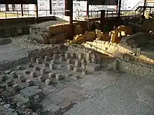 Excavations began in August 1977 (when the site was originally discovered), resulting in the early discovery of late hypocausts (channels).[2] Between 1977 and 1980, the designated area was enlarged to include a space of 800 square metres (8,600 sq ft).[1] Interventions between 1980 and 1986 were made to specific points throughout the site in order to resolve problems associated with the chronology and architecture of the site.[1]