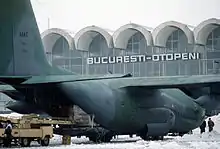 USAF C-130 Hercules unloads medical supplies at the Bucharest airport on 31 December.