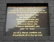 Memorial to the dead in the Rose & Crown bomb, Farnham Street, Belfast