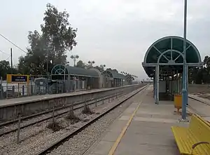 Rosh HaAyin South railway station is a railway station near Rosh HaAyin, Israel. Despite the name, it is located north-west of the city, near the historic site of Antipatris (Tel Afek).