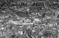 Hofplein station was opened on 1 October 1908 by the Zuid-Hollandsche Electrische Spoorweg-Maatschappij. The viaduct (also called the De Hofbogen) was the first major reinforced concrete construction in the Netherlands and is probably the longest (1,9 km) Rijksmonument (since 2002). The station building was destroyed during the Rotterdam Blitz on 14 May 1940, and a new building was opened in 1956, which was demolished for the construction of a railway tunnel between Rotterdam Centraal, Blaak, and Zuid in the early 1990s. When Hofplein station closed on 3 June 2006 for conversion of the Hofpleinlijn to RandstadRail it had one island platform, of which only one side was still in operation.