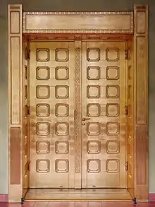 The auditorium with the organ is located on the second floor in the rear part of the building and is accessible from the stairwell via an elaborately designed double door.