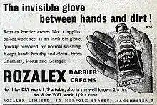 Rozalex was a brand of Rozalex Limited, a subsidiary of the Chloride Electrical Storage Company[1] credited with being the first company in the United Kingdom to commercialise topical barrier cream for use in an industrial setting.[2]