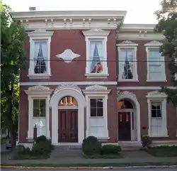 The Russellville Historic District in Russellville, Kentucky, is in south central Kentucky. Among Kentuckian municipalities in its size range it has the largest historic district, comprising fifty separate city blocks.[2] Another distinction is that the district is centered on the commercial corridor, instead of the county courthouse, unlike most county seats in Kentucky.[3]