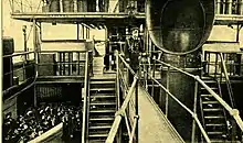 The ships were powered by a pair of vertical triple-expansion steam engines, each driving one propeller shaft, using steam generated by 20 Belleville boilers. The engines were rated at 15,800 indicated horsepower (11,800 kW) and designed to reach a top speed of 18 knots (33 km/h; 21 mph). Knyaz Suvorov, however, only reached a speed of 17.5 knots (32.4 km/h; 20.1 mph) from 15,575 ihp (11,614 kW) during her builder's machinery trials on 9 August 1904. The ships could carry enough coal to give them a range of 2,590 nautical miles (4,800 km; 2,980 mi) at a speed of 10 knots (19 km/h; 12 mph).[4]