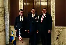 ![]() Colonel Ryan S. Sweeney at his award ceremony, after having received the Swedish Order of the Sword in 2023. | |