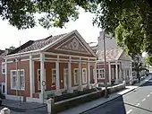 • Fountain of São Domingos (Chafariz de São Domingos/Chafariz Devisme), integrated into a long wall, and aligned with pilasters, terminated in cornices, the main panel crowned by crowned with backrest and obelisk with two spouts in the shape of dolphins, topped by niche and rectangular cartouche;[4]