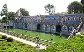 • Fountain of Laranjeiras (Chafariz das Laranjeiras), located on the posterior of a building in front of the palace, it was built as part of the Águas Livres water supply project for Lisbon, and consists of rectangular facade, flanked by vertical square pillars, decorated with cornices and friezes.[5]