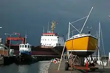 The steamship connection to Faaborg started in 1903, the port was further deepened in 1924, and in 1933 a fully improved ferry berth was built. Two years earlier, Arthur Christian Jørgensen had established a workshop specializing in the repair and improvement of small ship engines, developing into a full shipyard in 1950 with around 30 men employed to build fishing boats. The first dry dock opened in 1967 with a much bigger version inaugurated in 2006. This is big enough to build ferries and naval ships of up to 7000 tons.