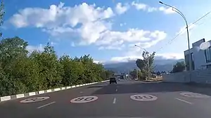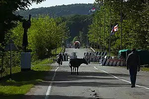 The Georgian S1 route (Georgian: ს1, also known as Tbilisi-Senaki-Leselidze), is a "road of international importance" with a registered length of 542.7 kilometres (337.2 mi) within the Georgian classification system, which makes it the longest Georgian highway route.[1] It runs from Tbilisi via Mtskheta, Gori, Khashuri, Zestaponi, Kutaisi, Samtredia, Senaki, Zugdidi, Sukhumi and Gagra to the border with Russia near Leselidze at the northwestern tip of the country, covering in practice 537 kilometres (334 mi). After crossing the Georgia–Russia border in breakaway Abkhazia, the highway continues to Sochi and Krasnodar as A147. It is part of European E60, E97 and E117 routes and Asian Highways AH5, AH81 and AH82, and connects with six other S-routes.
