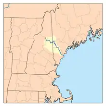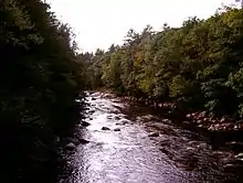 The Saco River (Abenaki: Sαkóhki) is a river in northeastern New Hampshire and southwestern Maine in the United States. It drains a rural area of 1,703 square miles (4,410 km2) of forests and farmlands west and southwest of Portland, emptying into the Atlantic Ocean at Saco Bay, 136 miles (219 km) from its source.[1] It supplies drinking water to roughly 250,000 people in thirty-five towns; and historically provided transportation and water power encouraging development of the cities of Biddeford and Saco and the towns of Fryeburg and Hiram.[2]