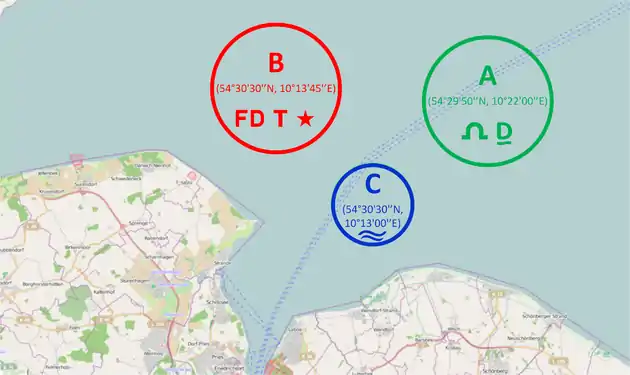 B: 54°30'30'’N, 10°13'45'’E(Flying Dutchman, Tempest & Star)