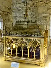 Well understood from 1950s excavations, the Romanesque choir was demolished sometime between 1500 and 1525 to make room for a new one in Flamboyant Gothic, rapidly given stained glass windows which survived the French Revolution and are the most notable feature of the church. The church was made a monument historique on 25 April 1846[1] and a restoration began soon afterwards, but this and subsequent attempts were rarely completed, with the building's overall state getting worse and worse until a general restoration of the nave early in the 20th century. The choir was already a near-ruin by the time of its bombing on 8 and 9 June 1940 and was finally fully restored after 1945.