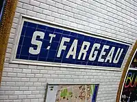 Saint-Fargeau (French pronunciation: [sɛ̃ faʁʒo]) is a station of the Paris Métro, serving Line 3bis. The station owes its name to its location under Place Saint-Fargeau, which was named after the politician Louis-Michel Lepeletier de Saint-Fargeau (1760-1793) who had participated in the French Revolution and was assassinated in 1793, allegedly for voting for the execution of Louis XVI.