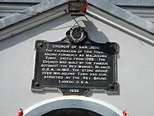 Fr. Jose Victoria built the church in 1762. The Augustinian Chapter of May 9, 1767, named Fr. Agustin Horbegozo as the town's parish priest.[2] Fr. Tomas Cañón replaced the old structure with one made of lime and pebbles. In 1790 the archbishop of Manila ordered the parish church of Batangas to give one of its old, dismantled retablos to San Jose.[3] Fr. Manuel Blanco in 1812 replaced the original buildings with new ones made of masonry, he constructed the convento and began the work on the present church, but left in 1816 without seeing it completed. The church roof went up in flames in 1847 and was changed to tile in 1849 by Fray Marcos Anton.[3] A fire damaged both the church and convento in 1857.[3] While the church underwent repairs, a new convento had to be built. Fr. Ramon Sanchez took over the parish in 1856 and continued the restoration work on the church, with the completion of the convent and tower, he also added a baptistery to the church in 1868; that was fitted with a marble font in 1878. Fray Bruno Laredo (1870–1884) improved both church and convent, rebuilding the bamboo sacristy in stone, and commencing the work on the transept.[3] During the term of Fr. Vicente Maril (1884–1887), the roof of the church was replaced by galvanized iron. Fr. Victoriano Perez (1890 to 1896) restored the L-shaped convent and completed works on the transept and dome.