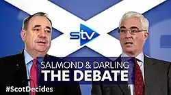 Salmond & Darling: The Debate is a Scottish television debate that was first broadcast on STV on 5 August 2014. The two-hour broadcast marked the first face-to-face debate between First Minister Alex Salmond and Alistair Darling, chairman of the Better Together Campaign, ahead of the forthcoming Scottish independence referendum, in front of a studio audience of 350 people.[2]