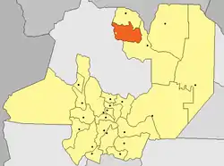 The easternmost parts of the province have a hot semi-arid climate (Köppen BSh) with a rainy season in the summer.[7][8] The mean annual temperature and precipitation are 20 °C (68.0 °F) and 500 millimetres (19.7 in).[7][8] Temperatures can reach up to 47 °C or 116.6 °F during summer, while they can fall down to −5 °C or 23 °F during winter.[7][8]