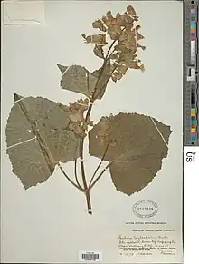 Inflorescences are racemes or raceme-panicles up to 25 cm (9.8 in), with a yellow corolla that is 3.5 to 3.8 cm (1.4 to 1.5 in), occasionally smaller.[1]
