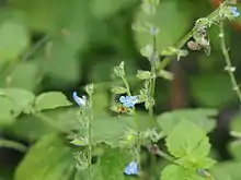 Salvia misella, commonly known as tropical sage,[1] is an annual herb growing throughout tropical America, often found in semi-arid regions on disturbed bushy ground, from sea level to 2,200 metres (7,200 ft). It is similar and perhaps closely related to Salvia occidentalis, with a longer calyx (7 millimetres (0.28 in)) and a 5 millimetres (0.20 in) blue flower.[2]