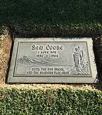 Afterward, his body was flown back to Los Angeles for a second service, at the Mount Sinai Baptist Church on December 19,[81] which included a much-heralded performance of "The Angels Keep Watching Over Me" by Ray Charles, who stood in for a grief-stricken Bessie Griffin. Cooke was interred at Forest Lawn Memorial Park Cemetery in Glendale, California.[44][82]