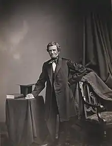Samuel Wilkeson Jr. was the son of a founding father of Buffalo, New York, Sam Wilkeson Sr. He went to college first at Williams in Massachusetts and then graduated from Union College in Schenectady.[3] After getting started as a freelance writer, Samuel Wilkeson Jr. had been the proprietor and co-editor of The Democracy in Buffalo, a pro-Whig, anti-Know-Nothing newspaper.[2] From approximately 1857 until 1861 worked for New York Tribune under Horace Greeley.[2] One account claims he left the Tribune for the Times "from his indignation at Horace Greeley's act in bailing Jeff Davis,"[4] but this is an erroneous or perhaps politically motivated retcon because Greenley contributed to the $100,000 bail for the release of Jefferson Davis in May 1867, two years after the end of the civil war.[5]