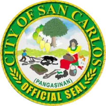 San Carlos City, officially the City of San Carlos (Pangasinan: Siyudad na San Carlos; Ilocano: Siudad ti San Carlos; Filipino: Lungsod ng San Carlos), is a 3rd class component city in the province of Pangasinan, Philippines. According to the 2020 census, it has a population of 205,424 people.[3] It is the most populated city in Pangasinan and the entire Ilocos Region.