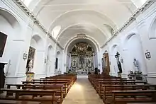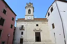 While the church was initially erected by medieval times, the present structure has undergone many re-edifications. The church was damaged during the second world war. The façade with stone blocks has tall pilasters and a baroque belltower rising from the cornice. The interior has a single nave surrounded by large pilasters. The main altarpiece depicts the Madonna with Blessed Ruggero, St Felix, Santa Rita and St Pope Pius V (1723) by Giacinto Boccanera. On the wall to the left of the entrance are two 16th-century frescoes depicting a Crucifixion and an Enthroned Virgin and Child with Saints Roch and Ambrosius. There are also 15th-century frescoes including a Virgin and Child with St Sebastian and St Bernardino da Siena.[1]