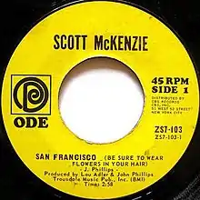 "San Francisco (Be Sure to Wear Flowers in Your Hair)" is an American pop music[2] song, written by John Phillips, and sung by Scott McKenzie.[3] It was produced and released in May 1967 by Phillips and Lou Adler, who used it to promote their Monterey International Pop Music Festival held in June of that year.[4]