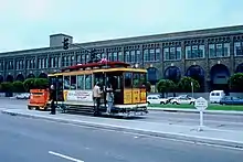 Although there had been proposals for a historic-streetcar service along the Embarcadero as early as 1974[15] and in 1981 Muni planners had also formally proposed the eventual implementation of such a service along Market Street,[16] the idea only really began to attract strong support from the business community and city officials in 1982, as the nearly two-year suspension of all cable car service loomed. The famed cable car system, a National Historic Landmark and one of the city's biggest tourist attractions, was determined in 1979 to be in need of extensive repairs. A thorough rebuilding of the entire system was scheduled to begin in September 1982 and last 20 months, with service on all three lines suspended for the duration; it ultimately lasted 21 months (until June 1984).[6][17] San Francisco business owners and others who benefited from tourism were very concerned that the temporary closure would lead to a steep drop in the number of visitors to the city. A historic trolley "festival", using a variety of vintage trolleys from around the U.S. and the world, was proposed as a substitute tourist attraction during the cable car suspension, especially during the one summer season that would be included in the 21-month suspension, summer 1983.[10]