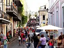 The San Sebastián Street Festival is a Puerto Rican festival that takes place in the Old San Juan, in honor of Saint Sebastian,[1][2][3] celebrated by the Catholic Church on January 20. The event starts the third Thursday of January through Sunday with an attendance of more than 200,000 people, making this activity recognized internationally.[1] The celebration has been introduced in Florida and Texas in the 2010s.[4][5]