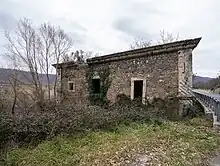 San Vittorino is a Baroque former Roman Catholic church in Cittaducale, province of Rieti, region of Lazio, Italy. Soon after completion in 1613, the church collapsed into a sinkhole, and the roofless ruins remain, with the facade sheltering a mineral-water pool that streams out the former portal. The combination of ruins and nature create an air of mystery; the church was used in some of the scenes of the movie Nostalghia.[1]