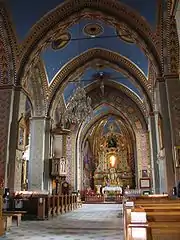 The figurine of Our Lady of Ludźmierz, which has drawn throngs of pilgrims since the Middle Ages was originally placed in one of the church's side altars, and it wasn't until 1776 that the statue made its way into the main altar. The statue of Our Lady of Ludźmierz is thought to be about 600 years old. The wooden statue itself is about 125 cm in height, and a replica is situated next to the "miraculous spring" next to the sanctuary.