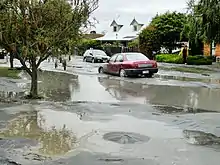Sand boils can be a mechanism contributing to liquefaction and levee failure during floods. This effect is caused by a difference in pressure on two sides of a levee or dike, most likely during a flood. This process can result in internal erosion, whereby the removal of soil particles results in a pipe through the embankment. The creation of the pipe will quickly pick up pace and will eventually result in failure of the embankment.