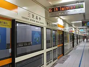 The Taipei Metro Sanmin Senior High School station is a station on the Luzhou Line located in Luzhou, New Taipei, Taiwan.